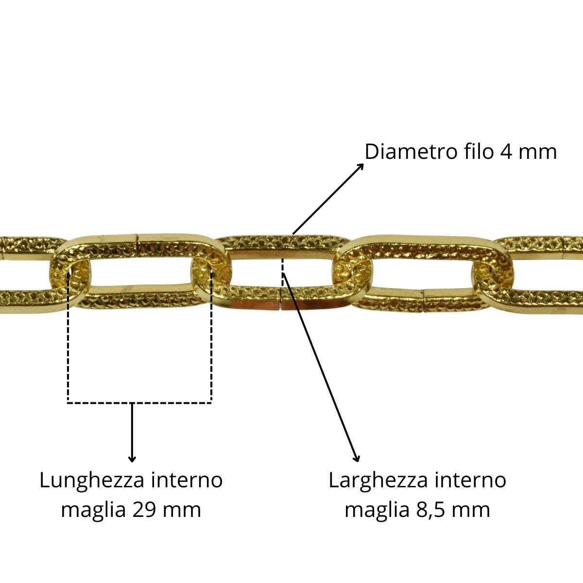 Catena genovese martellata Ø 4 mm, interno maglia 29 mm x 8,5 mm, metri 15, ottonata