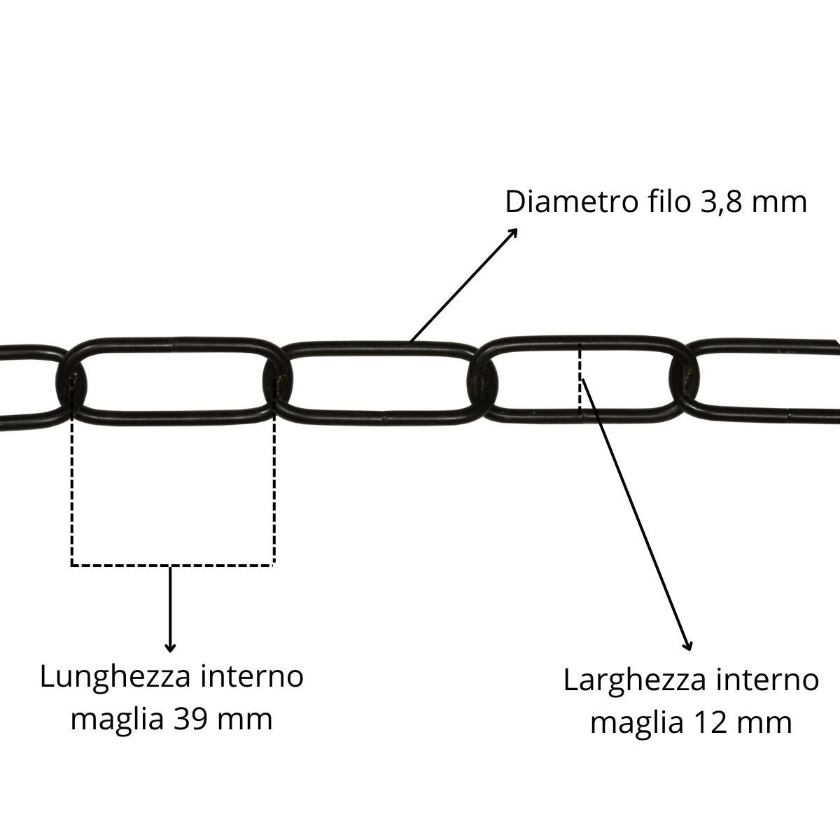 Catena genovese Ø 3,8 mm, interno maglia 39 mm x 12 mm, 1,5 mt, nera