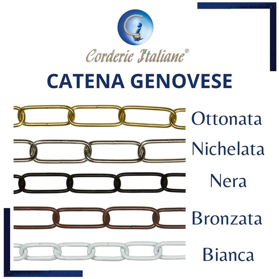 Catena genovese a filo tondo. Materiale: ferro con finitura nera. Indicata per usi domestici, decorativi e artigianali. Evitare di superare il carico massimo di rottura. Prodotto 100% Made in Italy.