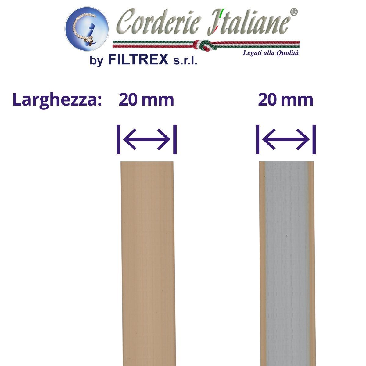 Cintino in pvc per tapparelle. Blister da 5,5 metri (per finestre), con larghezza pari a 20 mm, di colore beige-beige/grigio. Realizzato mediante tessitura su telaio meccanico, con materiali di prima scelta. Prodotto di qualità e 100% Made in Italy.