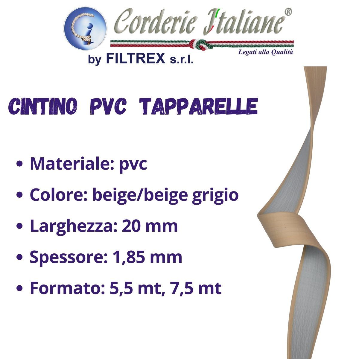 Cintino in pvc per tapparelle. Blister da 7,5 metri (per finestre), con larghezza pari a 20 mm, di colore beige - beige/grigio. Realizzato con materiali di prima scelta. Prodotto di qualità e 100% Made in Italy.
