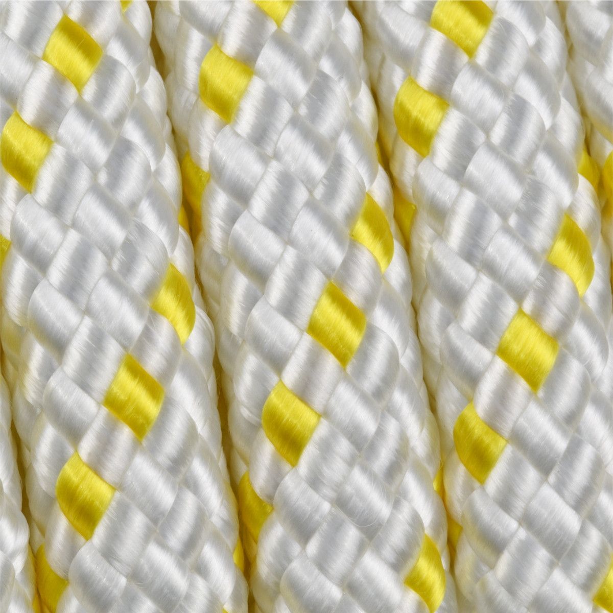Doppia treccia scotta poliestere alta tenacità, bianca con spia gialla, 8 mm - 30 mt