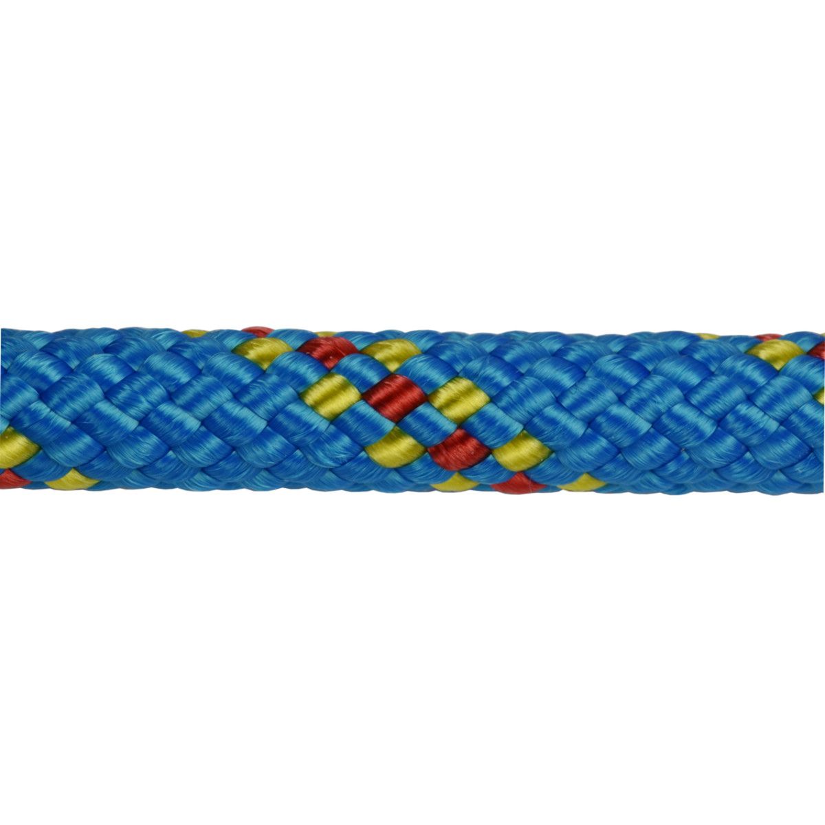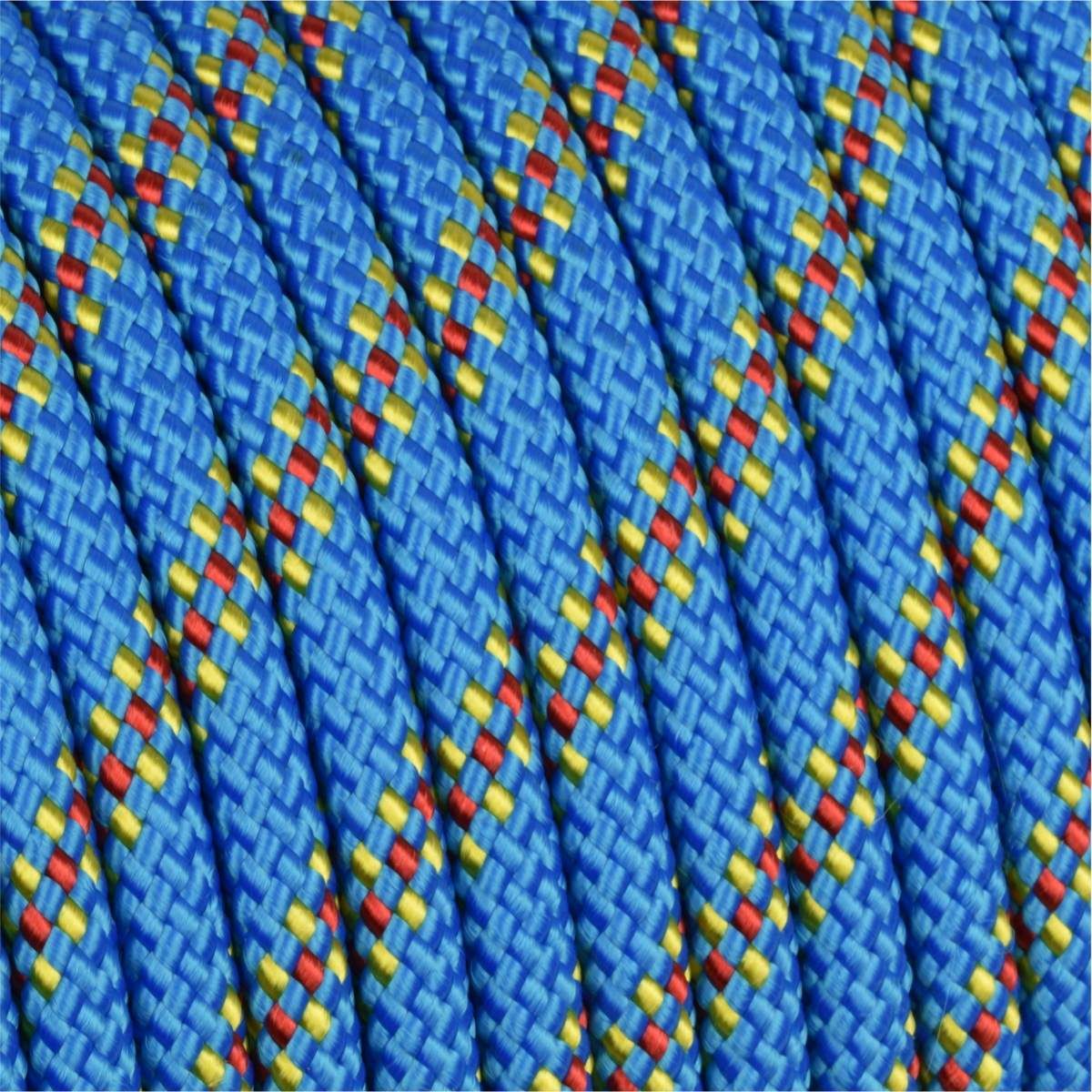 Doppia treccia in poliestere 100% prestirato alta tenacità, colore azzurro con spia gialla/rossa/gialla. Calza esterna e anima interna realizzate interamente con fibra di poliestere 100% alta tenacità. Viene utilizzata per issare o ammainare la vela sulle imbarcazioni. Si contraddistingue per un ridottissimo allungamento e un'elevata resistenza all'abrasione. Si asciuga velocemente e mostra una resistenza notevole alla lunga esposizione ai raggi UV. Si consiglia una saldatura a caldo dopo il taglio.