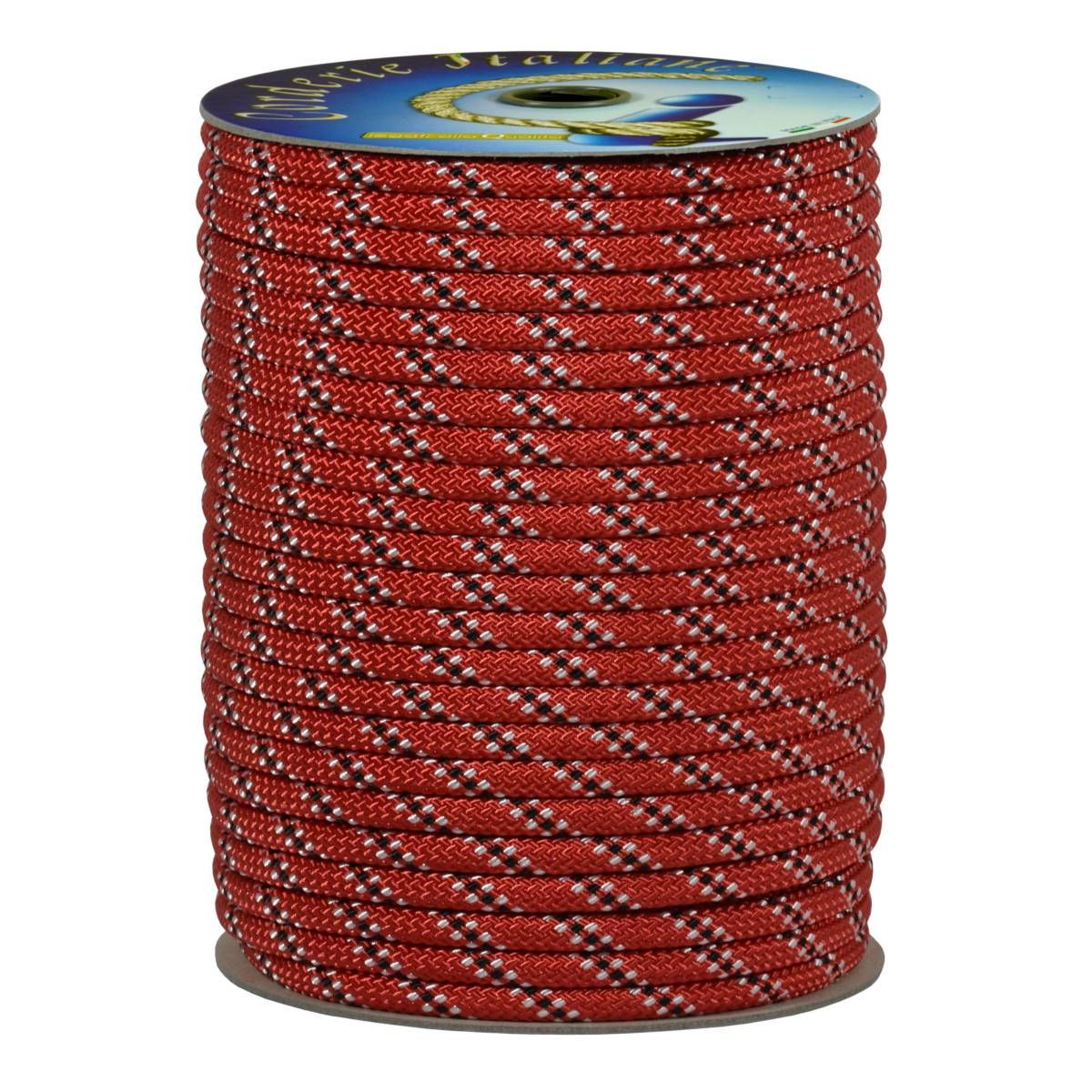 Doppia treccia in poliestere 100% prestirato alta tenacità, colore rosso con spia bianca/nera/bianca. Calza esterna e anima interna realizzate interamente con fibra di poliestere 100% alta tenacità. Viene utilizzata per issare o ammainare la vela sulle imbarcazioni. Si contraddistingue per un ridottissimo allungamento e un'elevata resistenza all'abrasione. Si asciuga velocemente e mostra una resistenza notevole alla lunga esposizione ai raggi UV. Si consiglia una saldatura a caldo dopo il taglio.