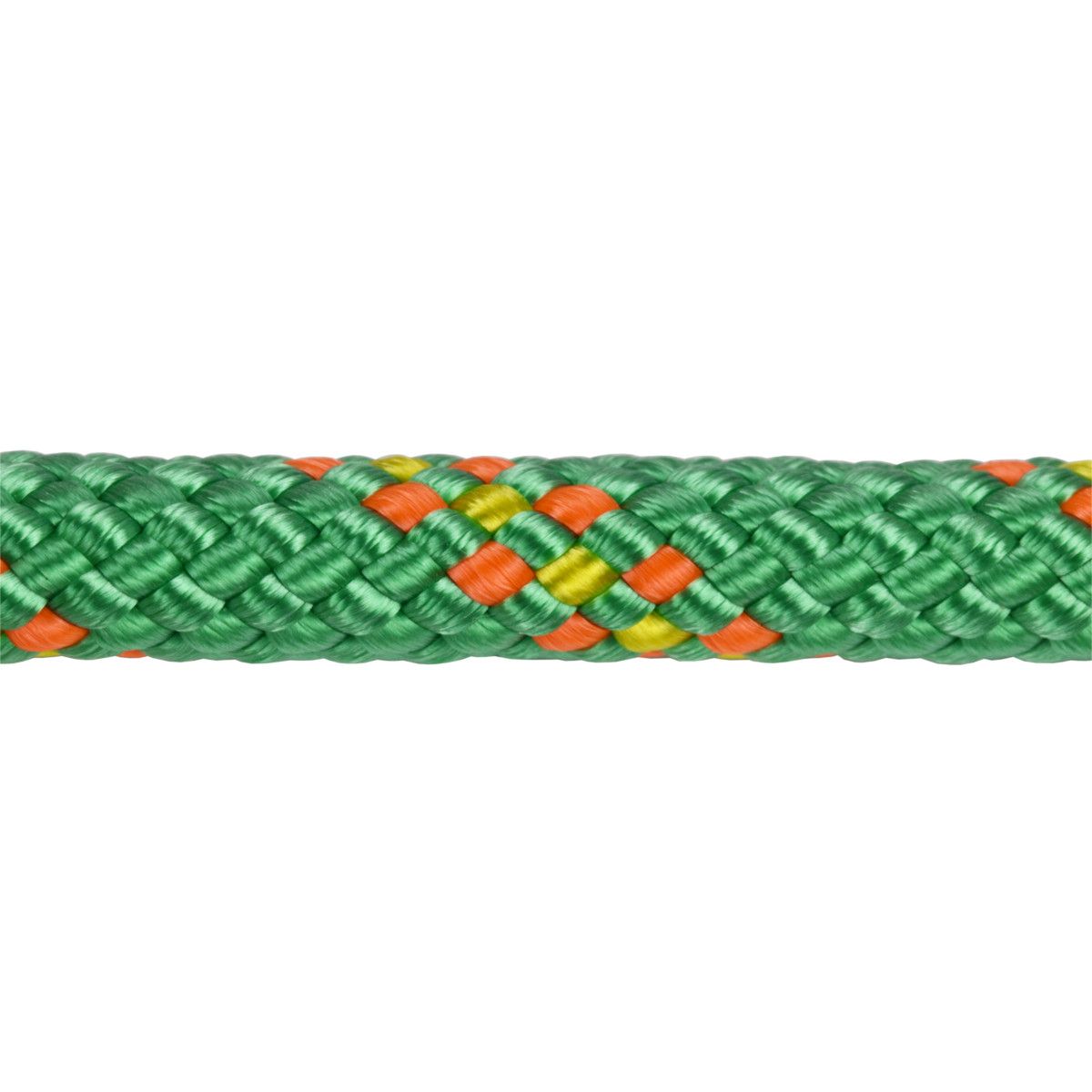 Doppia treccia in poliestere 100% prestirato alta tenacità, colore verde con spia arancio/giallo/arancio. Calza esterna e anima interna realizzate interamente con fibra di poliestere 100% alta tenacità. Viene utilizzata per issare o ammainare la vela sulle imbarcazioni. Si contraddistingue per un ridottissimo allungamento e un'elevata resistenza all'abrasione. Si asciuga velocemente e mostra una resistenza notevole alla lunga esposizione ai raggi UV. Si consiglia una saldatura a caldo dopo il taglio.