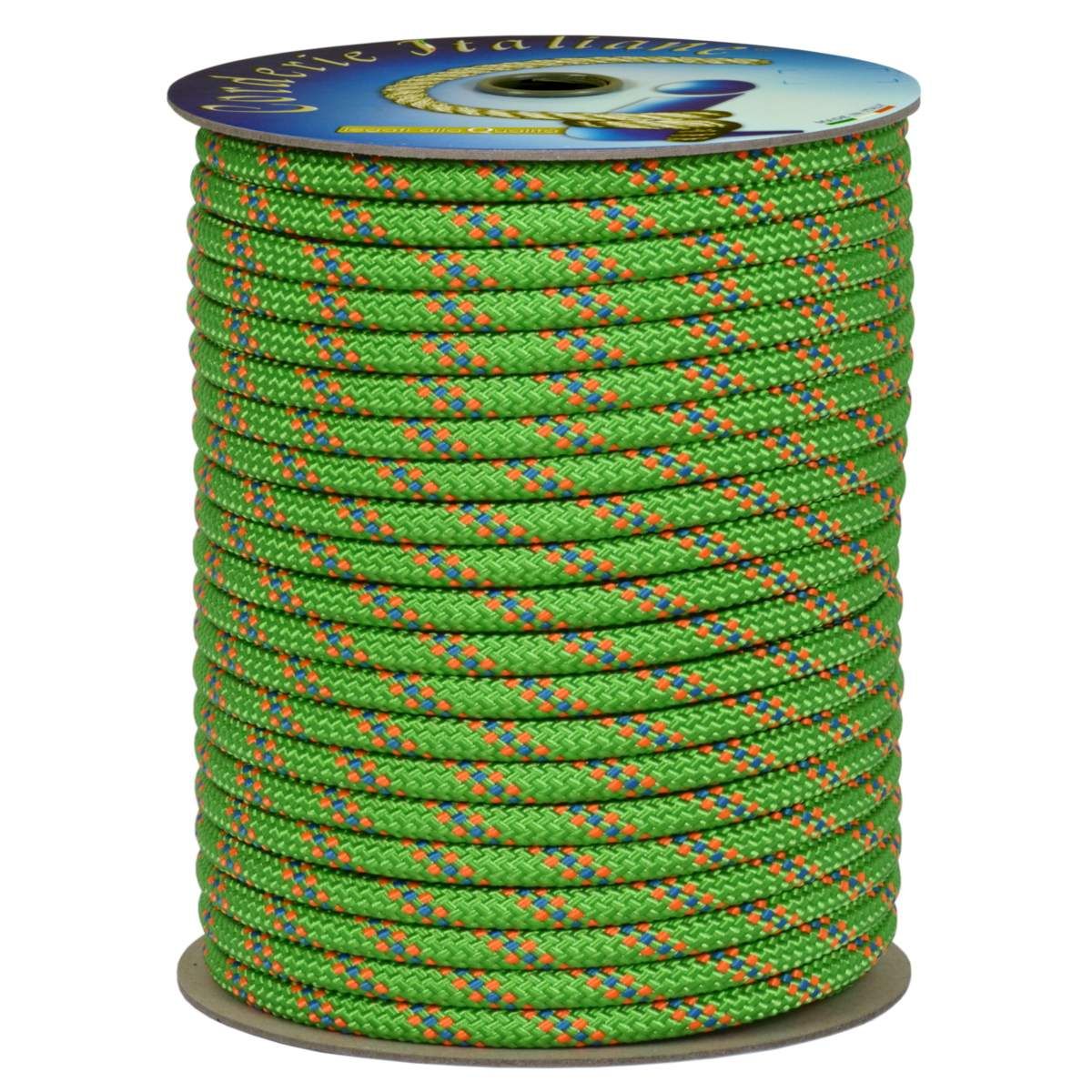 Doppia treccia in poliestere 100% prestirato alta tenacità, colore verde flu con spia arancio/azzurro/arancio. Calza esterna e anima interna realizzate interamente con fibra di poliestere 100% alta tenacità. Viene utilizzata per issare o ammainare la vela sulle imbarcazioni. Si contraddistingue per un ridottissimo allungamento e un'elevata resistenza all'abrasione. Si asciuga velocemente e mostra una resistenza notevole alla lunga esposizione ai raggi UV. Si consiglia una saldatura a caldo dopo il taglio.