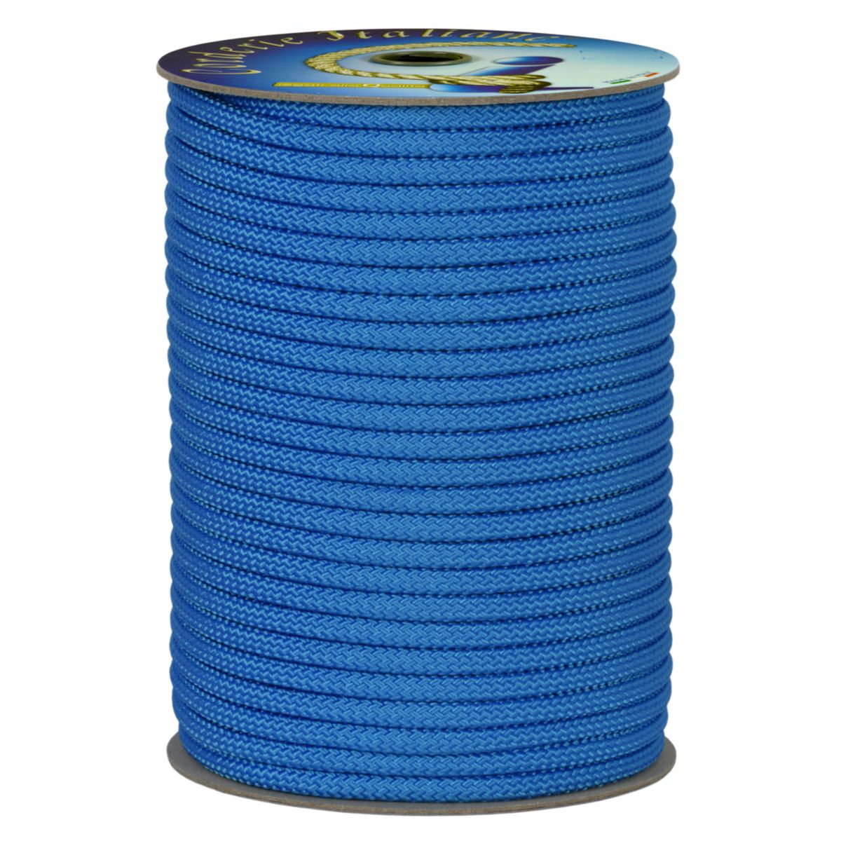 Doppia treccia in poliestere 100% prestirato alta tenacità, colore azzurro. Calza esterna e anima interna realizzate interamente con fibra di poliestere 100% alta tenacità. Viene utilizzata per issare o ammainare la vela sulle imbarcazioni. Si contraddistingue per un ridottissimo allungamento e un'elevata resistenza all'abrasione. Si asciuga velocemente e mostra una resistenza notevole alla lunga esposizione ai raggi UV. Si consiglia una saldatura a caldo dopo il taglio.