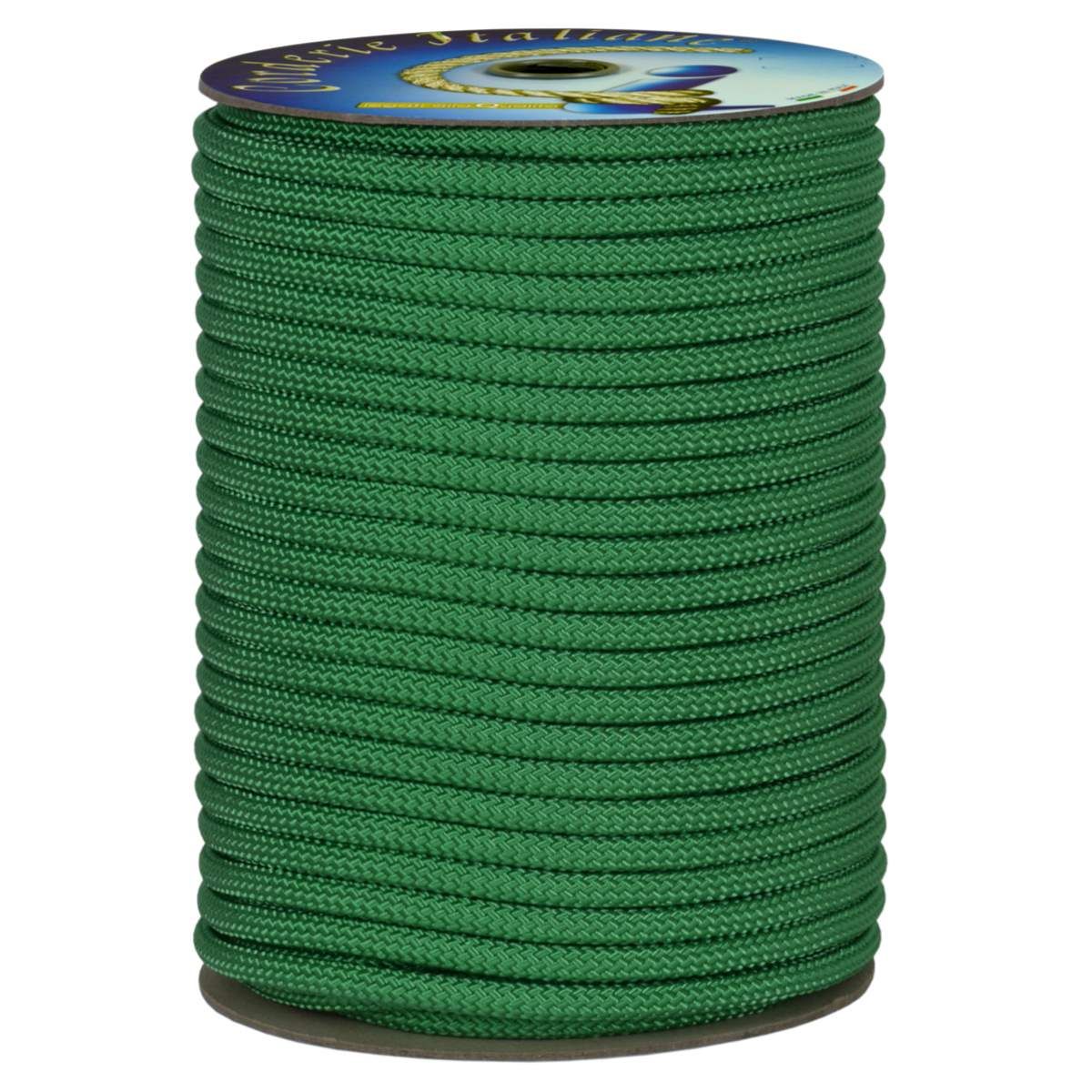 Doppia treccia in poliestere 100% prestirato alta tenacità, colore verde. Calza esterna e anima interna realizzate interamente con fibra di poliestere 100% alta tenacità. Viene utilizzata per issare o ammainare la vela sulle imbarcazioni. Si contraddistingue per un ridottissimo allungamento e un'elevata resistenza all'abrasione. Si asciuga velocemente e mostra una resistenza notevole alla lunga esposizione ai raggi UV. Si consiglia una saldatura a caldo dopo il taglio.