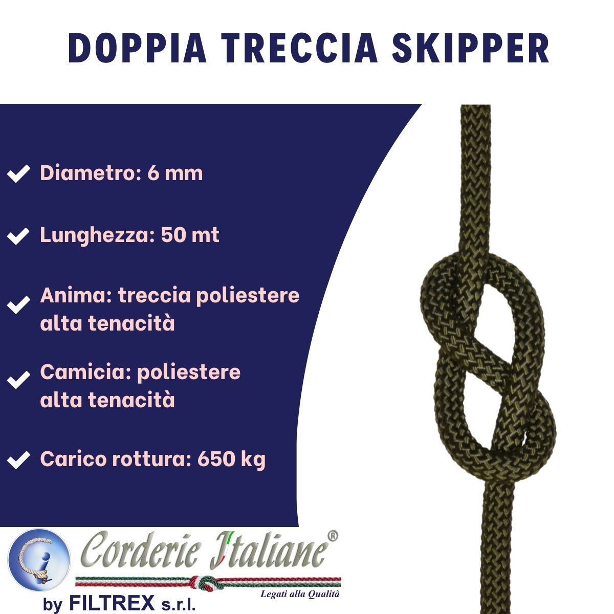 Doppia treccia skipper h.t., verde militare, 6 mm - 50 mt