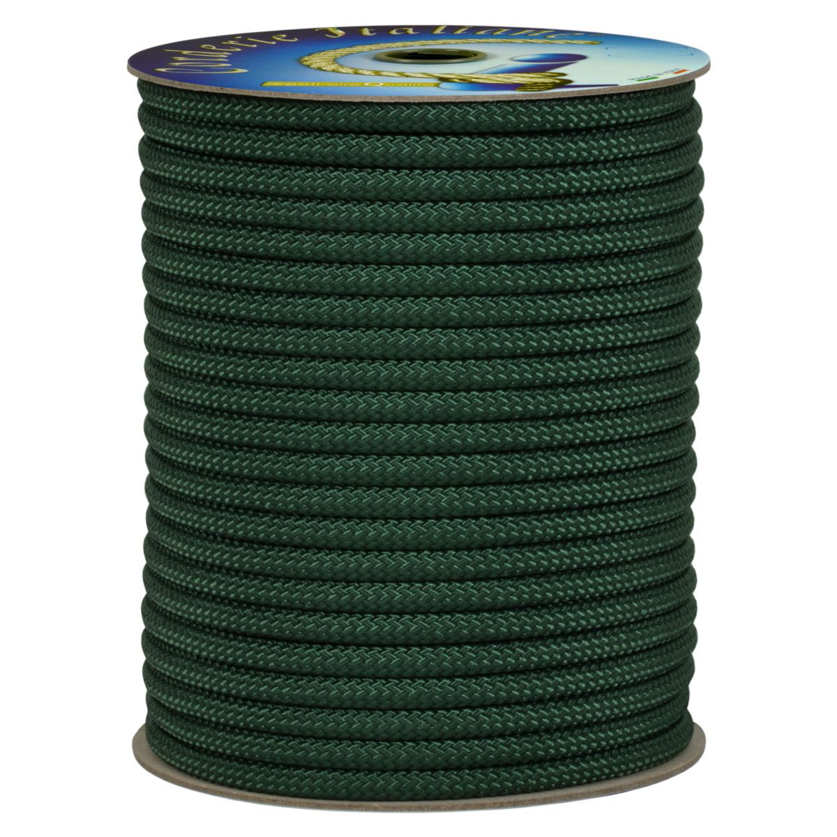 Doppia treccia in poliestere 100% prestirato alta tenacità, colore verde scuro. Calza esterna e anima interna realizzate interamente con fibra di poliestere 100% alta tenacità. Viene utilizzata per issare o ammainare la vela sulle imbarcazioni. Si contraddistingue per un ridottissimo allungamento e un'elevata resistenza all'abrasione. Si asciuga velocemente e mostra una resistenza notevole alla lunga esposizione ai raggi UV. Si consiglia una saldatura a caldo dopo il taglio.