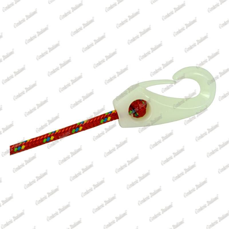 Gancio in nylon, colore bianco. Ideale per l'aggancio immediato di trecce e corde elastiche con nodo. Misura del foro pari a 8 mm. Confezione da 100 pezzi. Resistente agli agenti atmosferici.