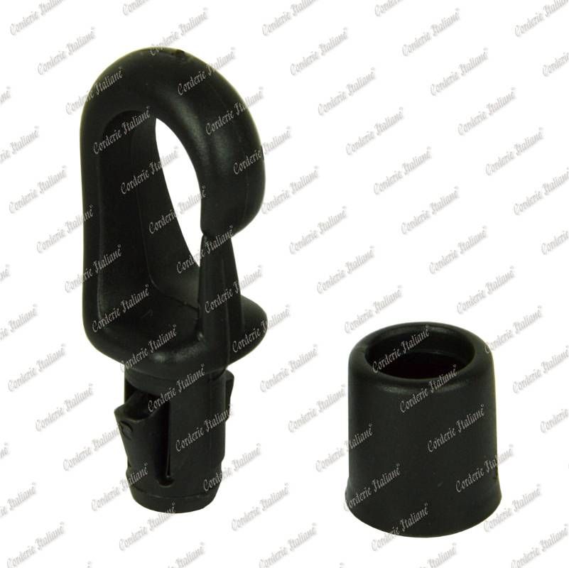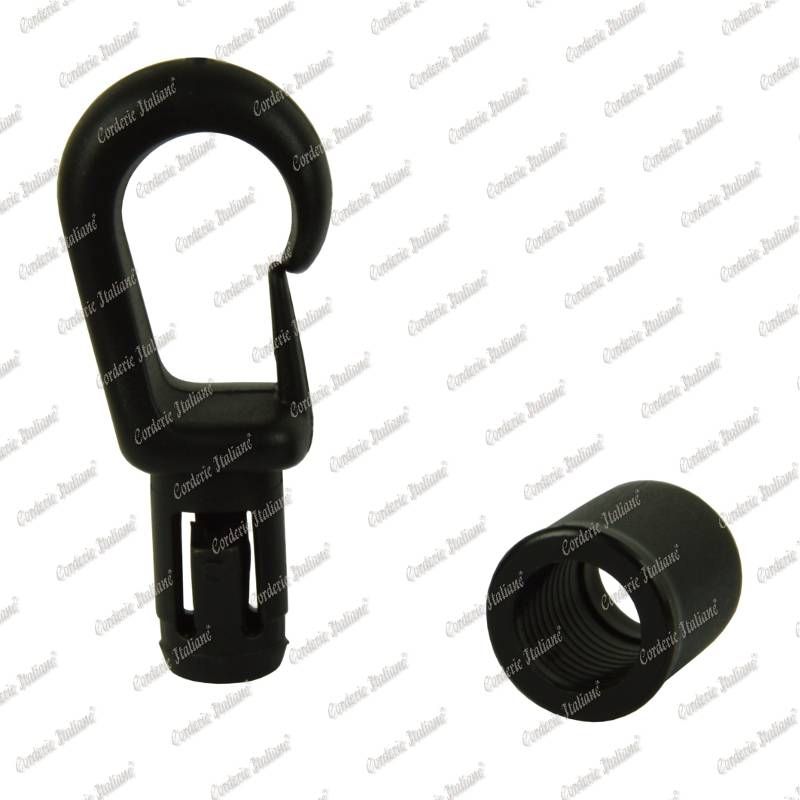 Gancio rapido in nylon, colore nero. Bloccaggio semplice e immediato. Esercitare una leggera pressione tra cono e gancio fino a sentire lo scatto di avvenuta chiusura. Diametro di 6 mm. Confezione da 4 pezzi.