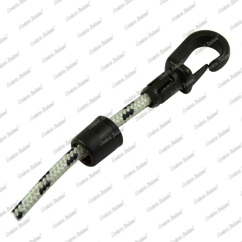 Gancio rapido in nylon, colore nero. Bloccaggio semplice e immediato. Esercitare una leggera pressione tra cono e gancio fino a sentire lo scatto di avvenuta chiusura. Diametro di 8 mm. Confezione da 100 pezzi.