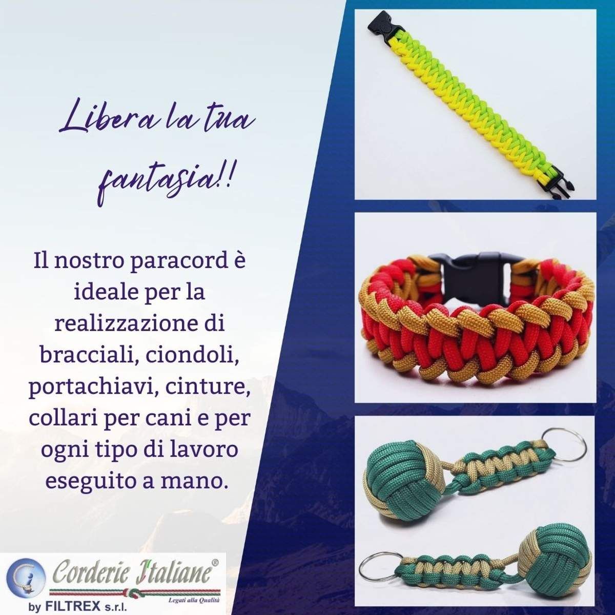 Il Paracord è una cordino originariamente utilizzato nella progettazione dei paracadute durante la seconda guerra mondiale. Da qui l'origine del suo nome. I soldati venivano lanciati dietro le linee nemiche e, una volta abbandonato il paracadute perché ingombrante, recuperavano il cordino affinché potesse essere utilizzato in tutte le circostanze. Fu così che emersero le sue incredibili qualità: leggero, resistente alle intemperie, ai raggi U.V., all’usura e allo sfregamento. Si rivelò un eccellente strumento per legare e trasportare rami per il fuoco, per costruire un riparo, per steccare un arto ferito, per preparare trappole per animali o nemici. Ha un carico di rottura di 250 kg, e questo lo rende un cordino adatto per qualunque tipo di attività outdoor: campeggio, percorsi di sopravvivenza ed escursioni di vario tipo.