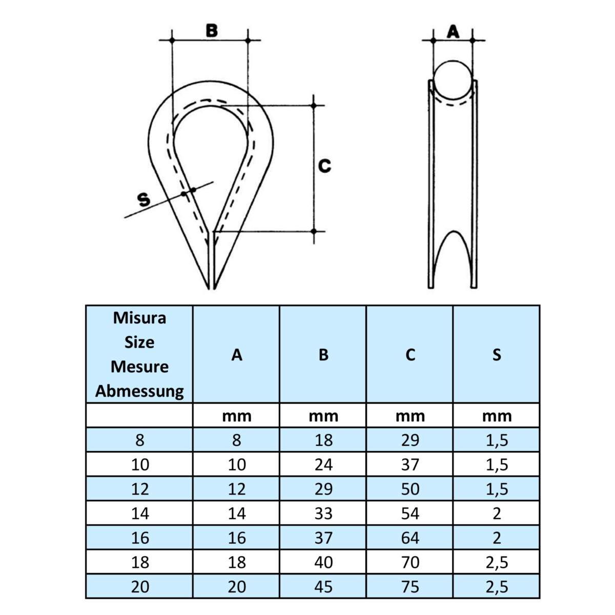 Redancia in acciaio inox AISI 316. Viene utilizzata principalmente per proteggere le asole delle funi dal contatto e dall'attrito con perni e punti di sollevamento e ancoraggio. Accessorio fondamentale per salvaguardare l'integrità della fune, non ha né portata né caratteristiche meccaniche. Disponibile in varie misure.