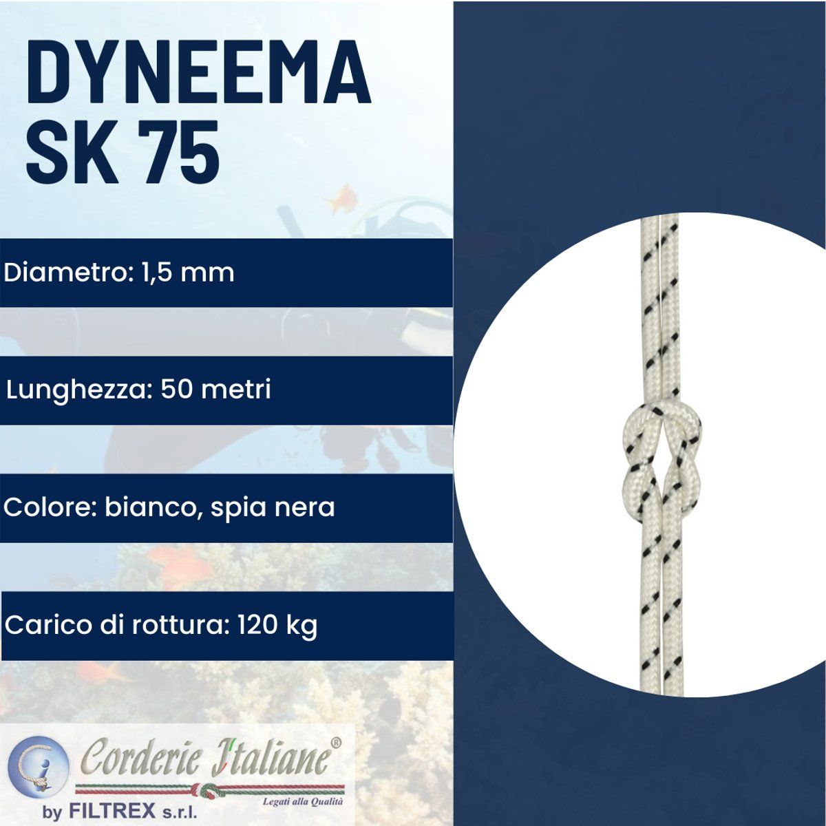 Sagola dyneema sk75 per fucili da sub, bianco/nera, 1,5 mm - 50 mt