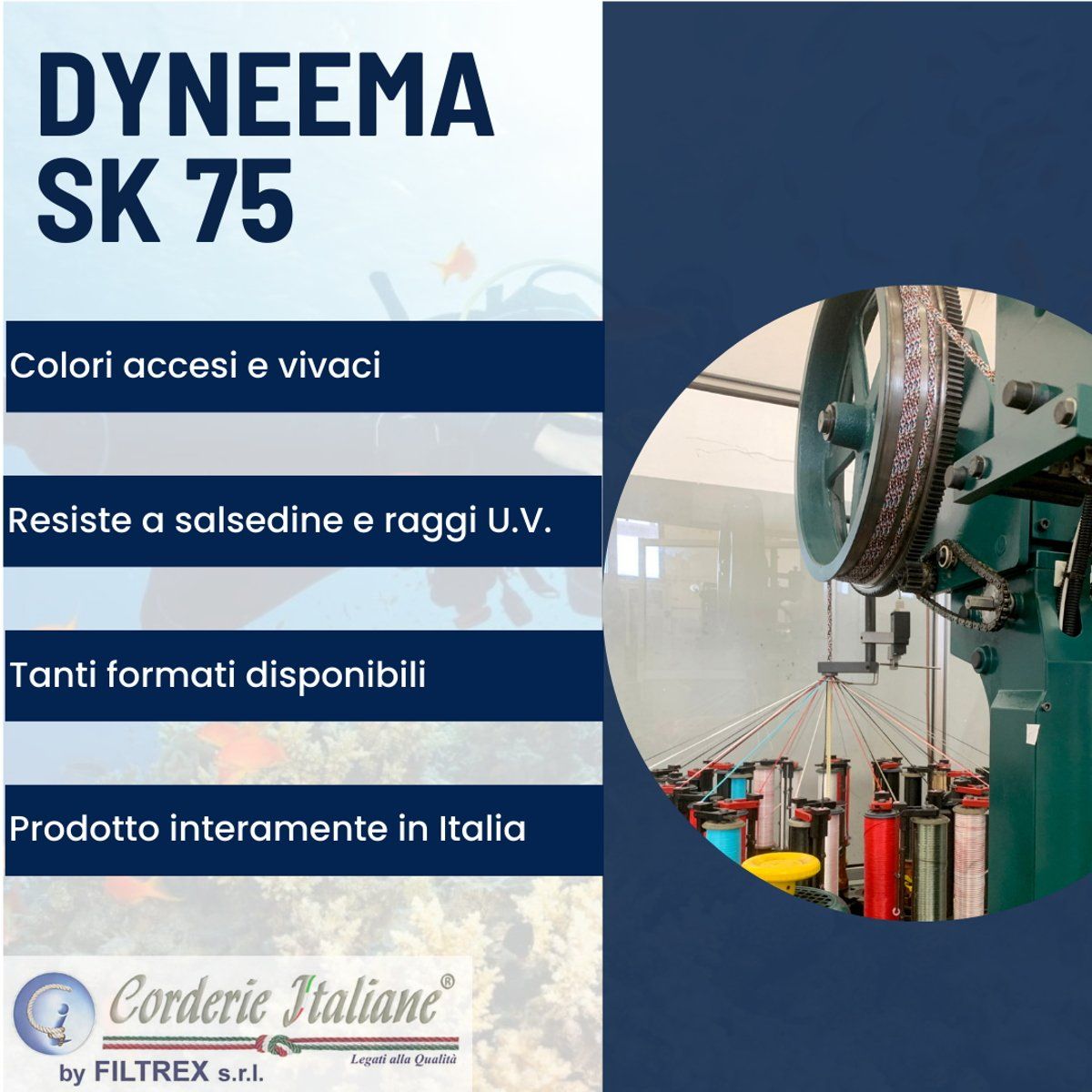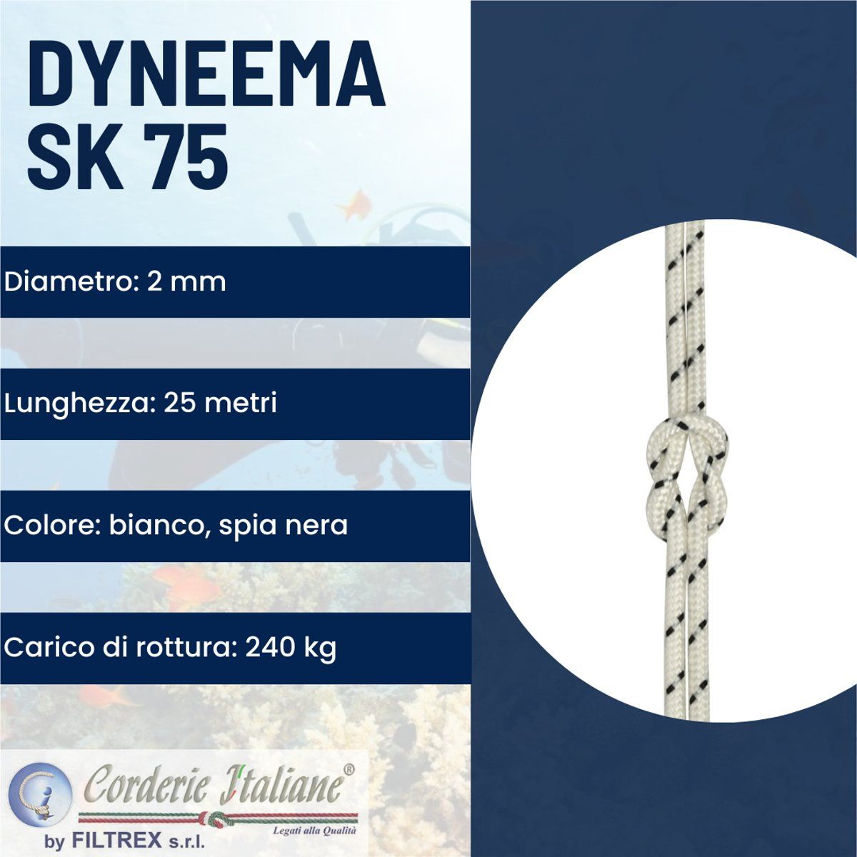 Composizione | Poliestere alta tenacità/dyneema sk75 |