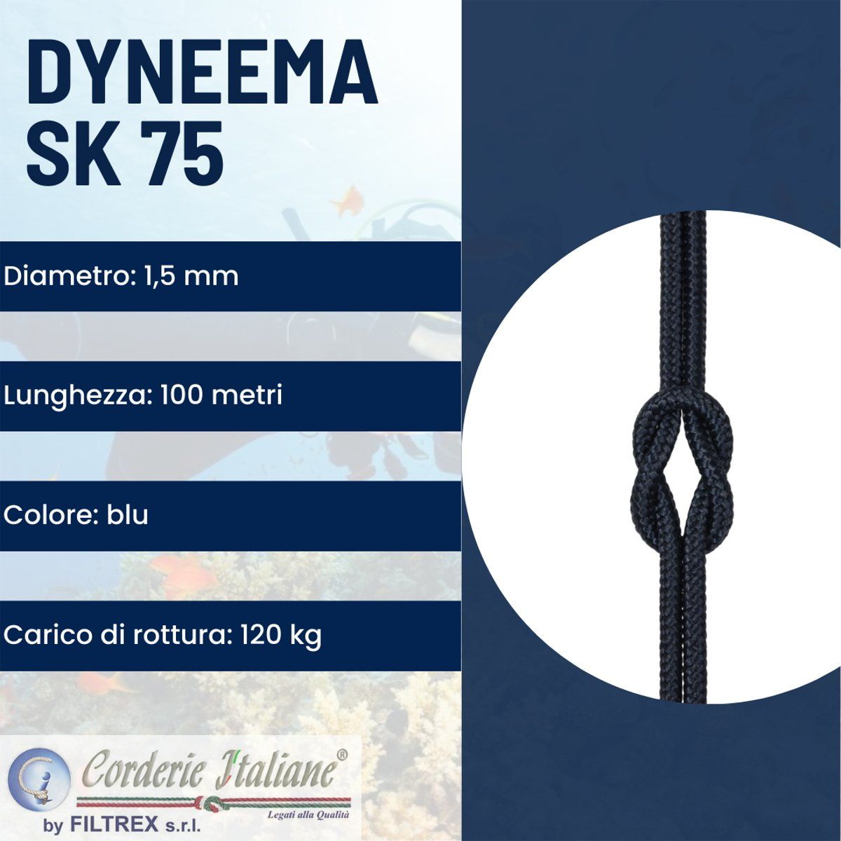 Sagola dyneema sk75 per fucili da sub, blu, 1,5 mm - 100 mt