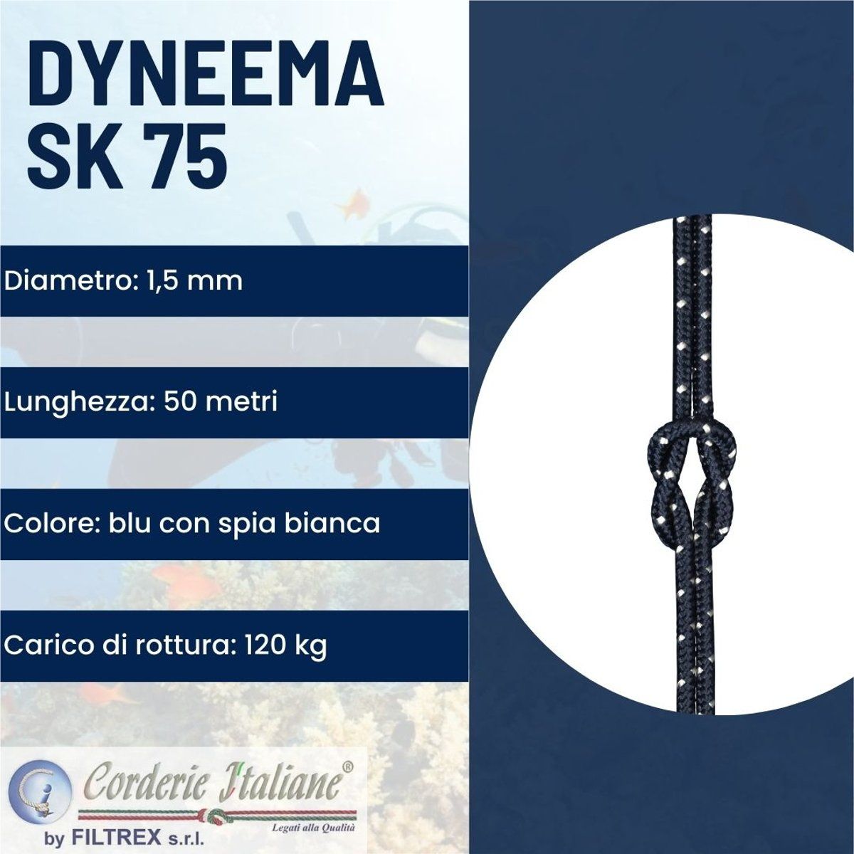 Sagola dyneema sk75 per fucili da sub, blu/bianca, 1,5 mm - 50 mt