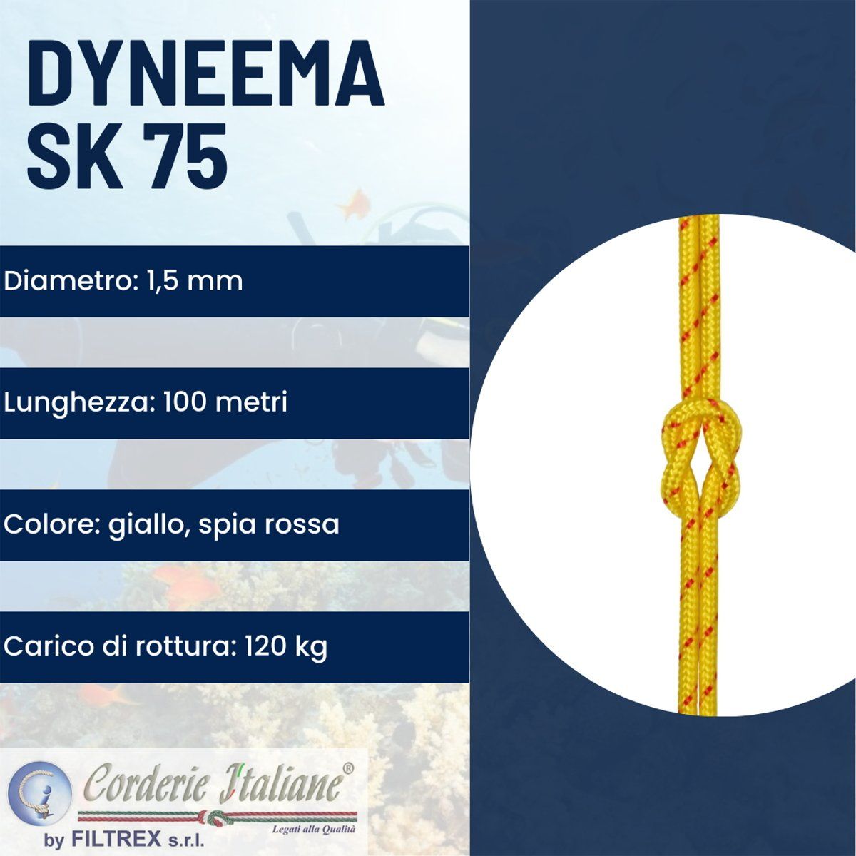 Sagola dyneema sk75 per fucili da sub, giallo/rossa, 1,5 mm - 100 mt