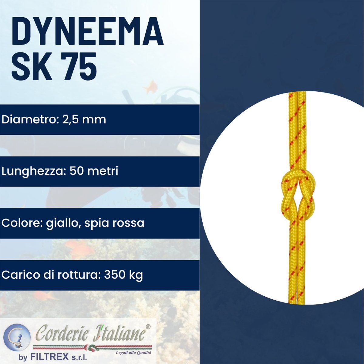 Sagola dyneema sk75 per fucili da sub, giallo/rossa, 2,5 mm - 50 mt