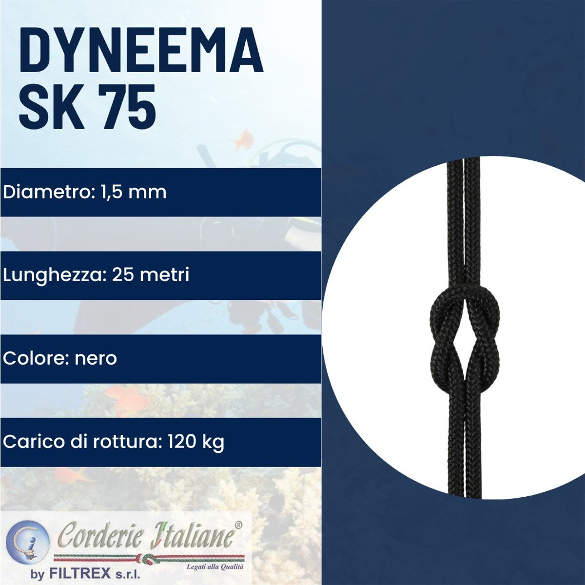 Sagola dyneema sk75 per fucili da sub, nera, 1,5 mm - 25 mt
