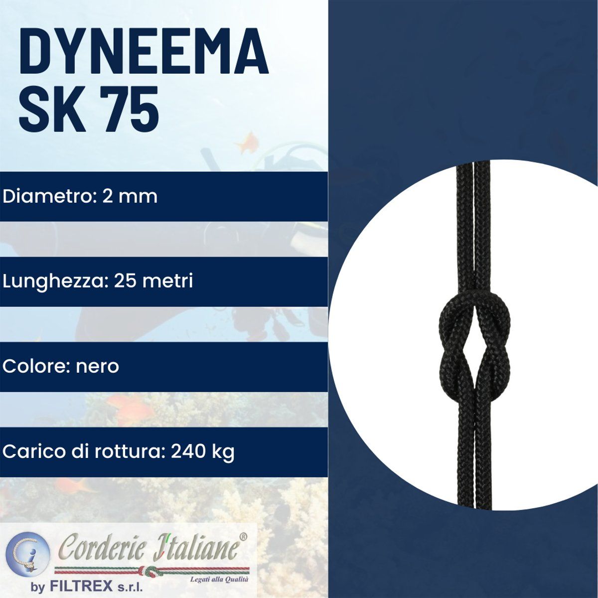 | Composizione | Poliestere alta tenacità/dyneema sk75 |