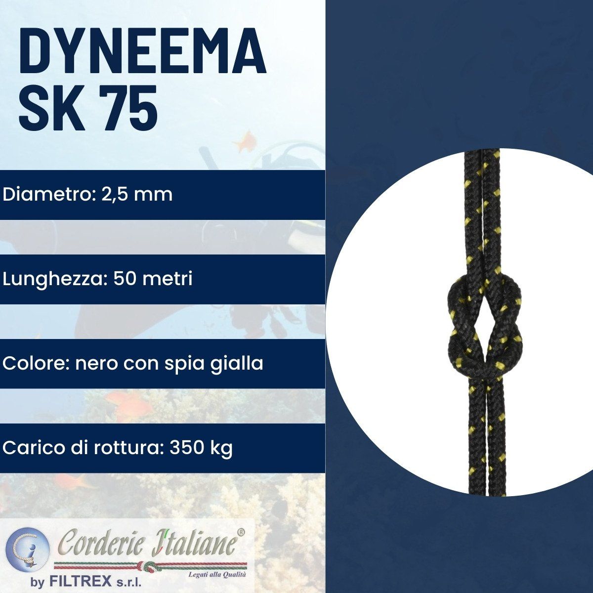 Sagola dyneema sk75 per fucili da sub, nero/gialla, 2,5 mm - 50 mt