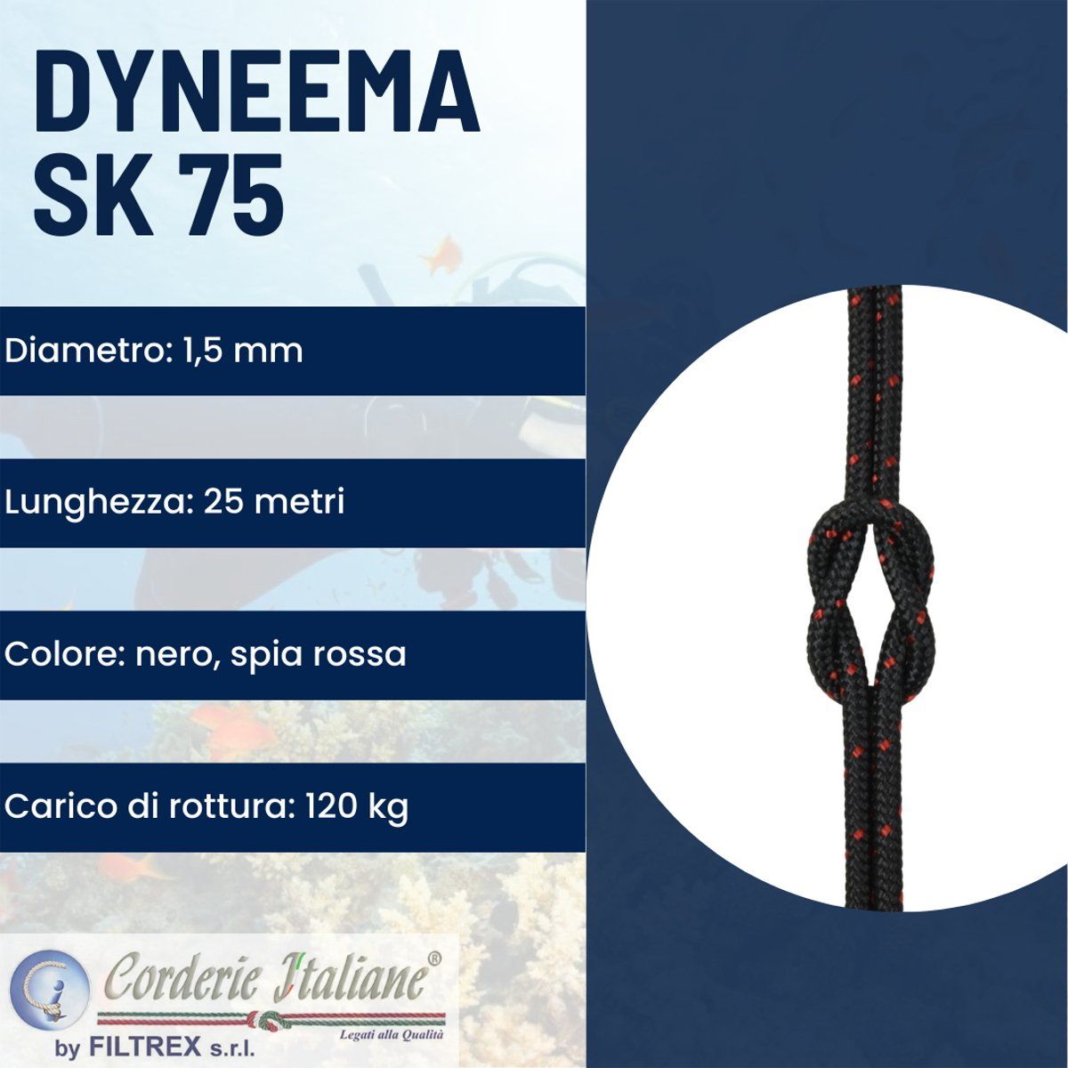 Composizione | Poliestere alta tenacità/dyneema sk75 |
