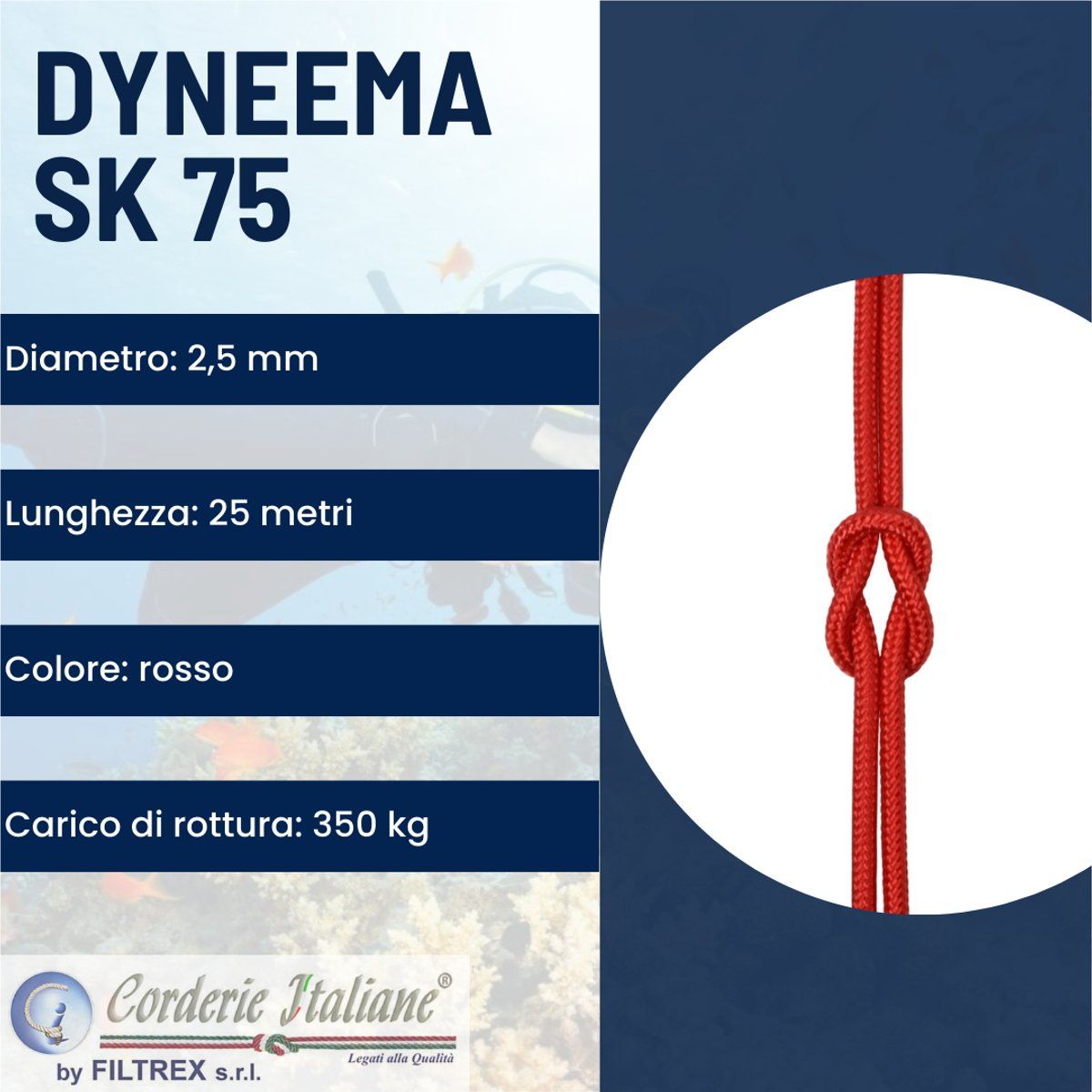 Sagola dyneema sk75 per fucili da sub, rossa, 2,5 mm - 25 mt