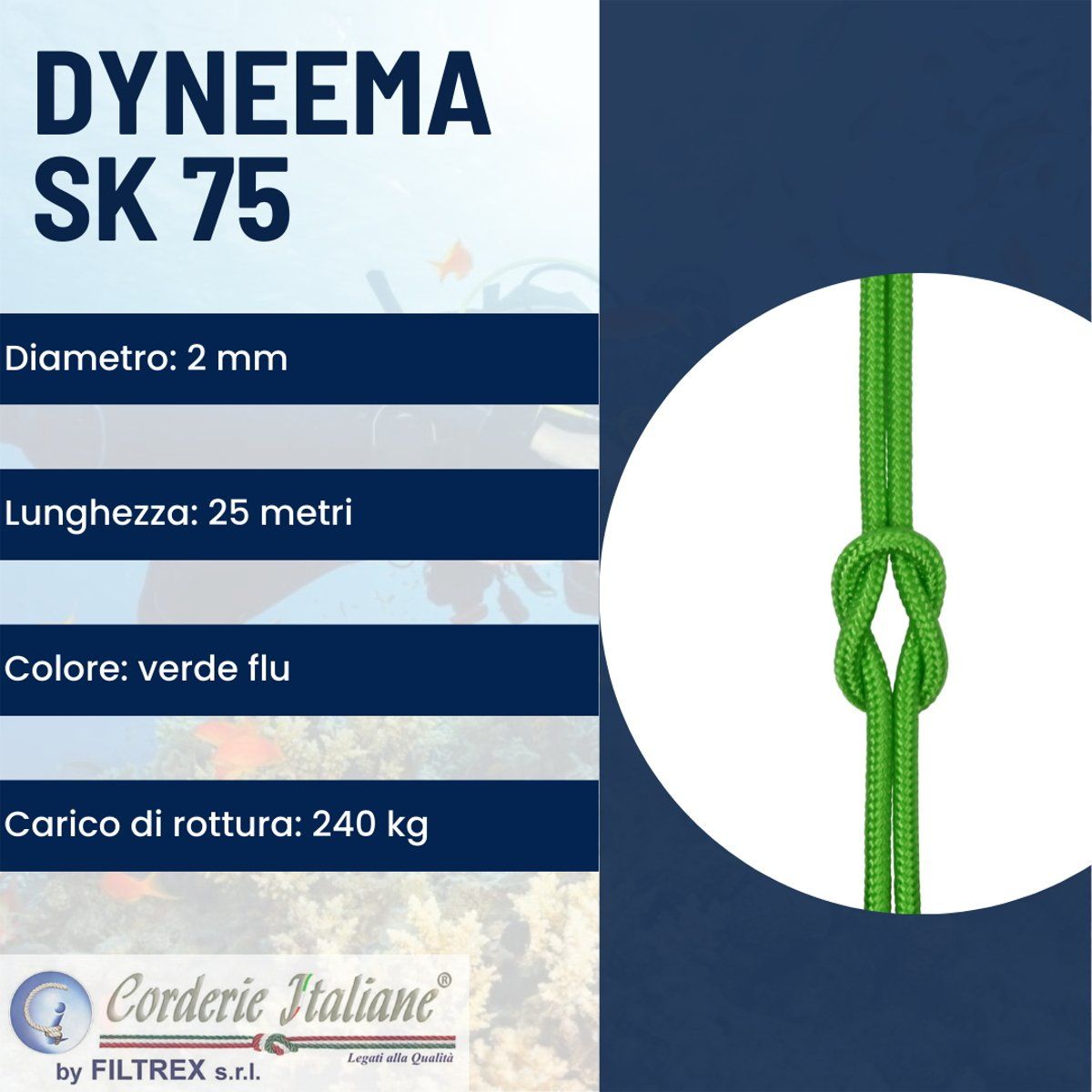 Sagola dyneema sk75 per fucili da sub, verde flu, 2 mm - 25 mt