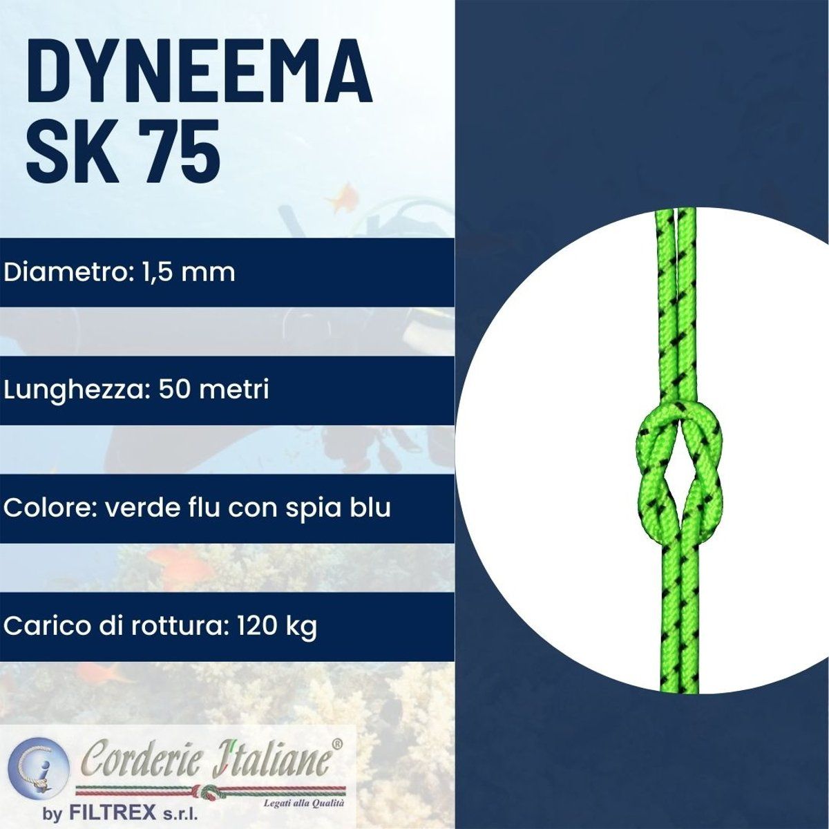 Sagola dyneema sk75 per fucili da sub, verde flu/blu, 1,5 mm - 50 mt