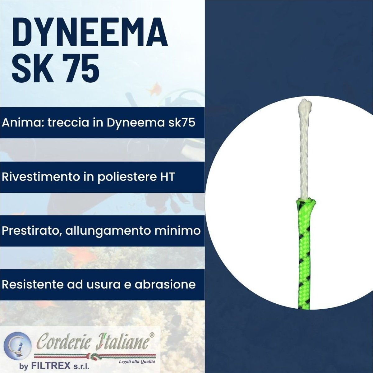 Composizione | Poliestere alta tenacità/dyneema sk75 |