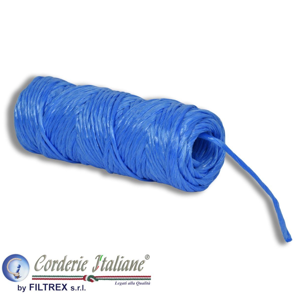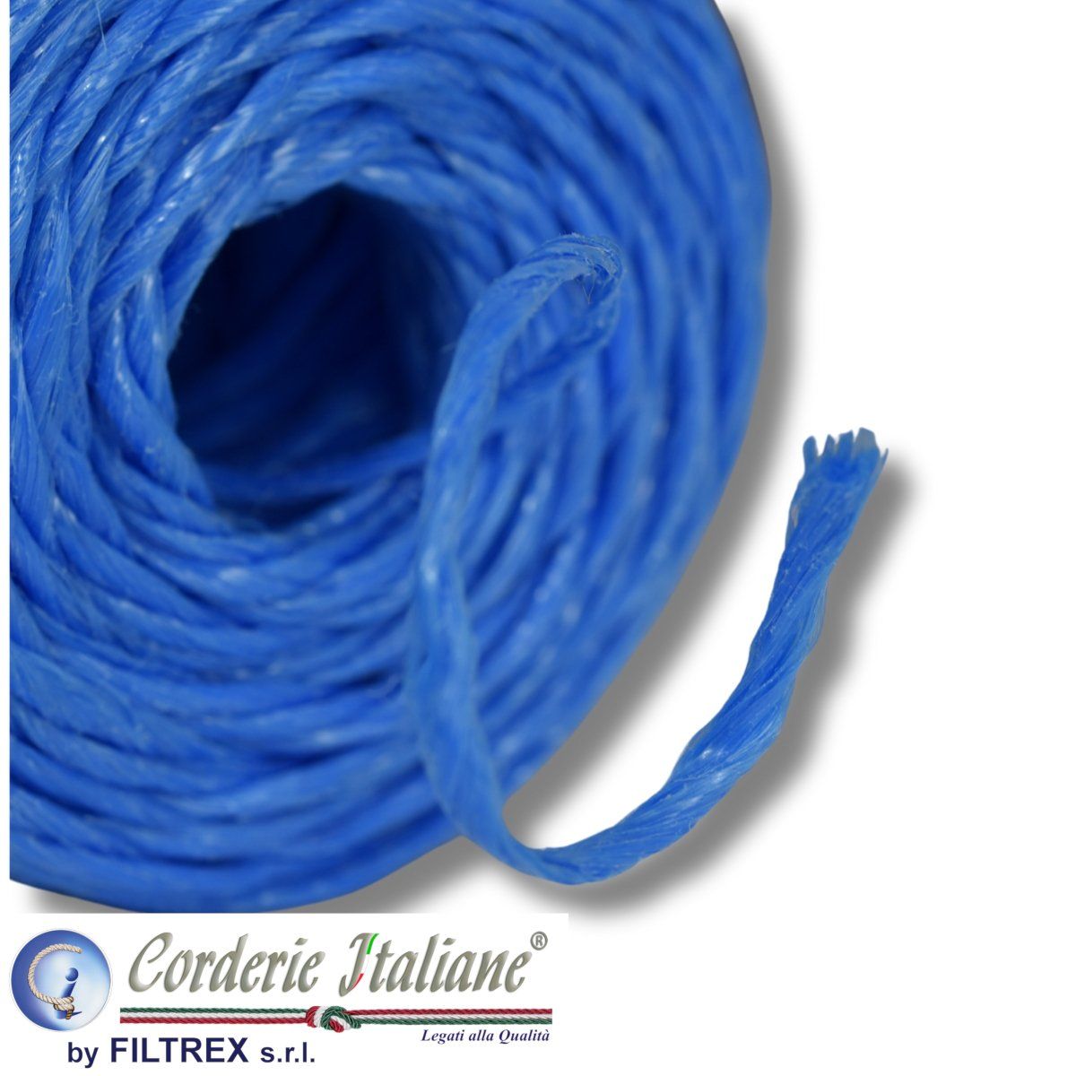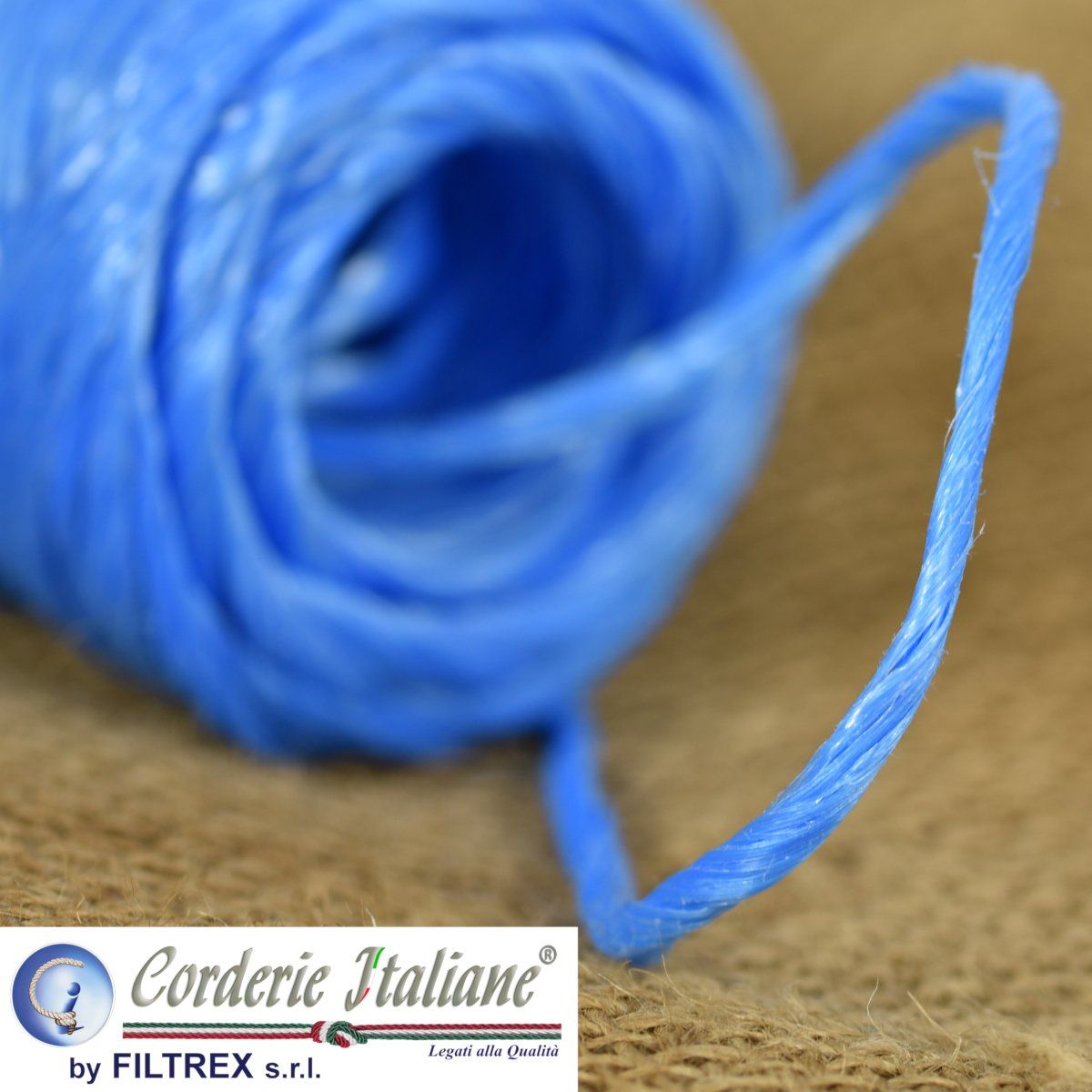 Spago rafia azzurro. La sua leggerezza e resistenza ne consentono l'utilizzo in diversi settori. Specifico per l'imballaggio e l'agricoltura. Idoneo anche per legature varie senza farsi male alle mani. Robusto, impermeabile, si snoda facilmente. Ottimo per lavori artigianali e decorativi vari. Sfilare il prodotto dall'interno, senza aprire l'intera confezione in pvc termoretratto. Disponibile in diversi titoli e formati. Prodotto di primissima qualità e 100% Made in Italy.