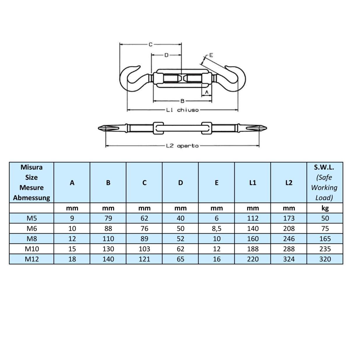 Tenditori a due ganci zincati: struttura e caratteristiche
