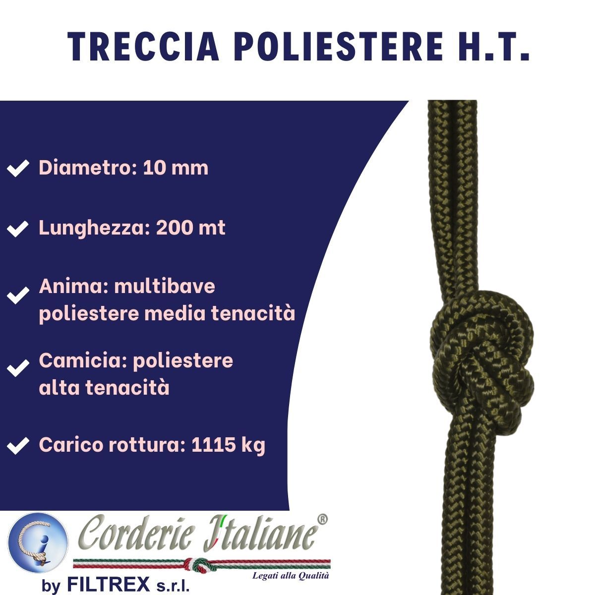 Treccia realizzata con calza in poliestere 100% alta tenacità prestirato colorato e anima in poliestere bianco. Morbida e resistente, si presta ad essere utilizzata principalmente nel settore nautico, ma trova applicazione anche nel settore edile, industriale, arredamento, per legature che richiedono una notevole forza di carico. Disponibile in diversi diametri e lunghezze, bobine con metri lineari continui e senza aggiunte. Si consiglia una saldatura a caldo dopo il taglio. Prodotto di primissima qualità e 100% Made in Italy.