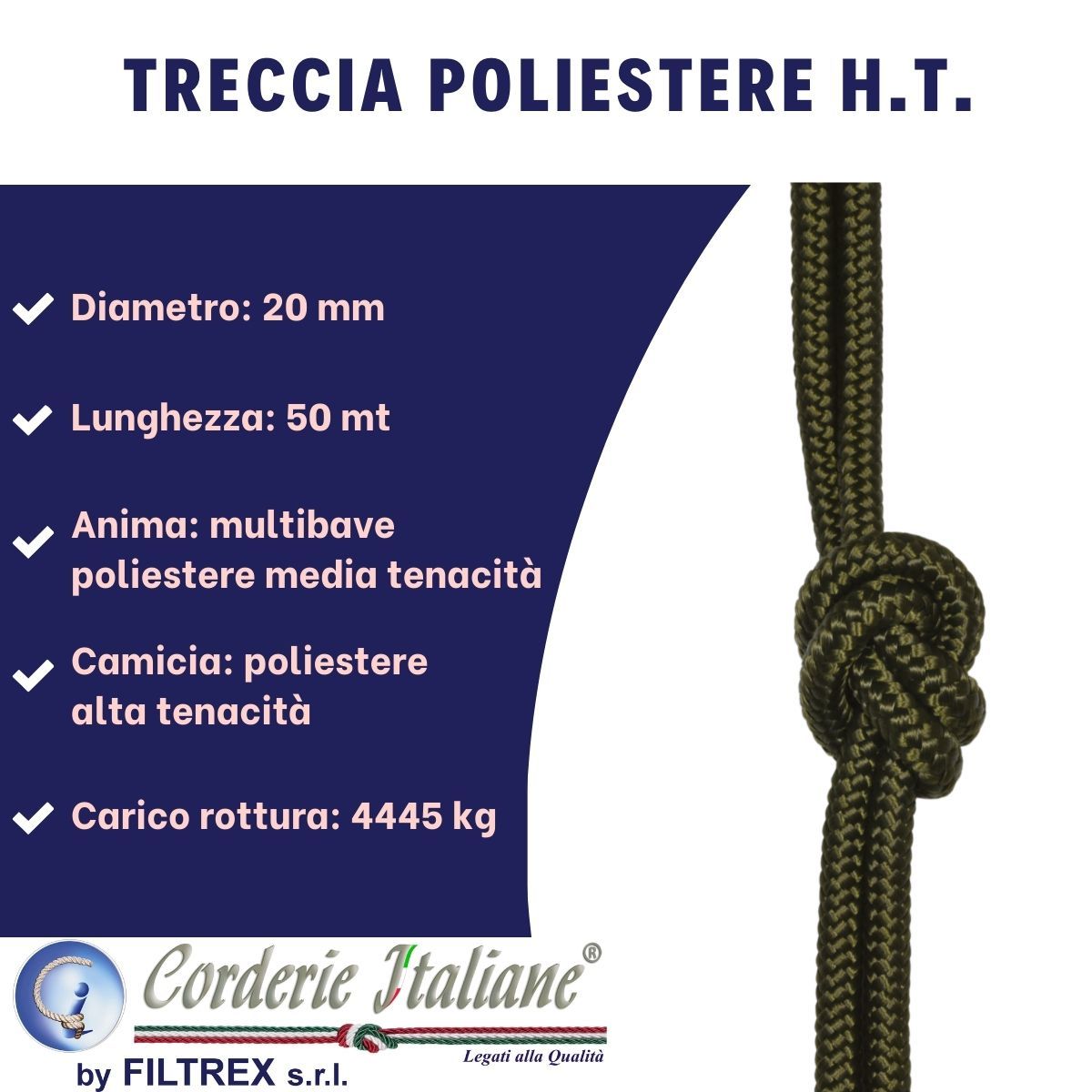 Treccia realizzata con calza in poliestere 100% alta tenacità prestirato e anima in poliestere bianco. Morbida e resistente, si presta ad essere utilizzata principalmente nel settore nautico, ma trova applicazione anche nel settore edile, industriale, arredamento, per legature che richiedono una notevole forza di carico. Disponibile in diversi diametri e lunghezze, bobine con metri lineari continui e senza aggiunte. Si consiglia una saldatura a caldo dopo il taglio. Prodotto di primissima qualità e 100% Made in Italy.