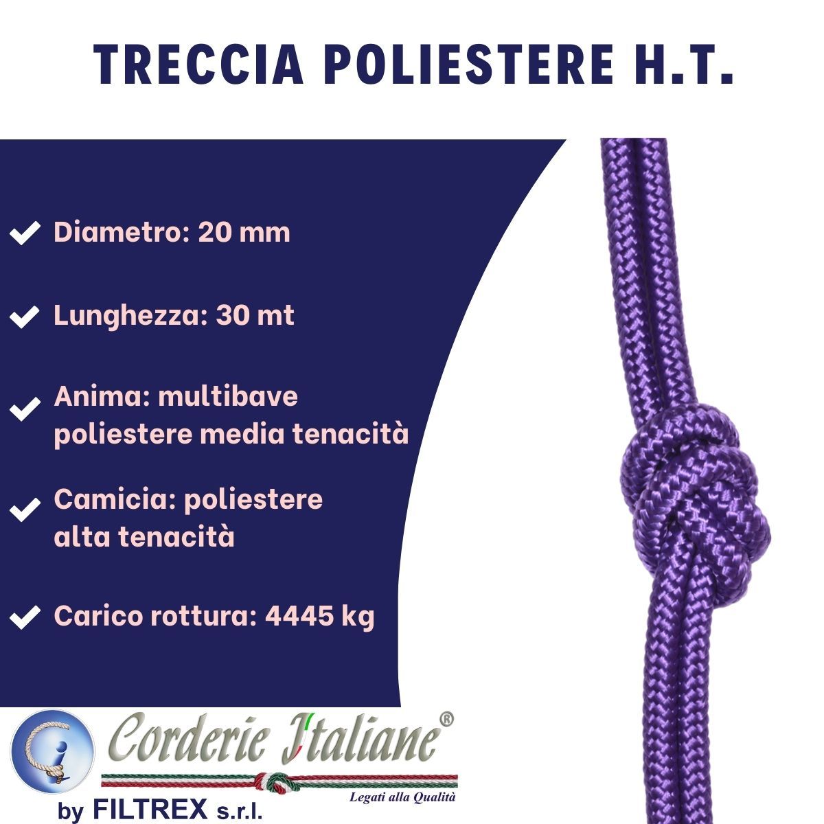Treccia realizzata con calza in poliestere 100% alta tenacità prestirato colorato e anima in poliestere bianco. Morbida e resistente, si presta ad essere utilizzata principalmente nel settore nautico, ma trova applicazione anche nel settore edile, industriale, arredamento, per legature che richiedono una notevole forza di carico. Disponibile in diversi diametri e lunghezze, bobine con metri lineari continui e senza aggiunte. Si consiglia una saldatura a caldo dopo il taglio. Prodotto di primissima qualità e 100% Made in Italy.