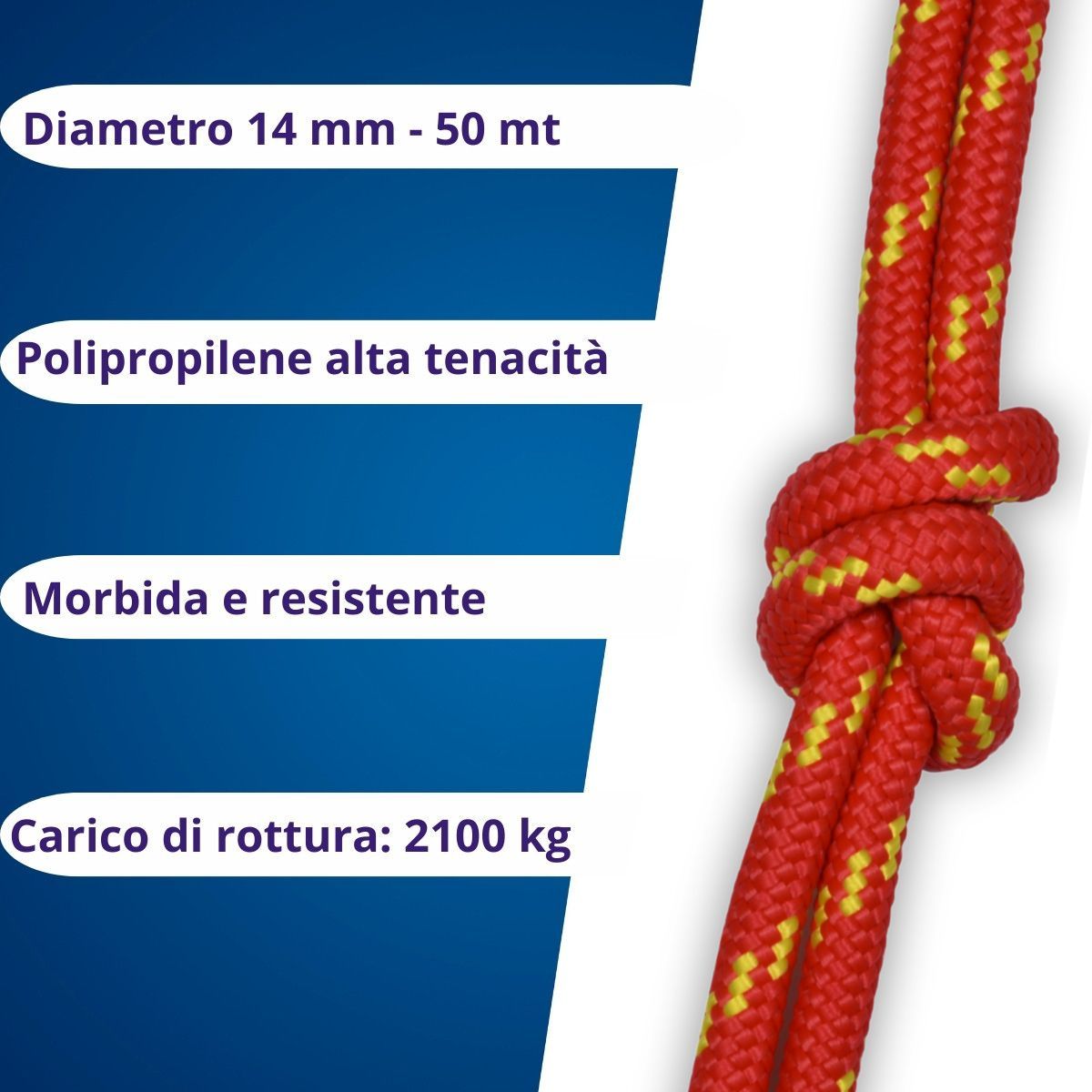 Treccia in polipropilene alta tenacità. Anima in poliestere. Morbida e resistente, si presta ad essere utilizzata principalmente nel settore nautico, ma trova applicazione anche nel settore edile, agricolo e industriale per legature che richiedono una certa forza di carico. Aspetto accattivante che la rendono idonea anche per la segnalazione di percorsi nei parchi avventura. Disponibile dal diametro 8 mm. al 14 mm., con tre spie colorate, lunghezze varie. Metri lineari continui e senza aggiunte. Si consiglia una saldatura a caldo dopo il taglio. Lavorazione a 24 fusi. Su richiesta produciamo l'articolo in diametri superiori e/o a tinta unita, senza spie colorate. Prodotto di primissima qualità e 100% Made in Italy.