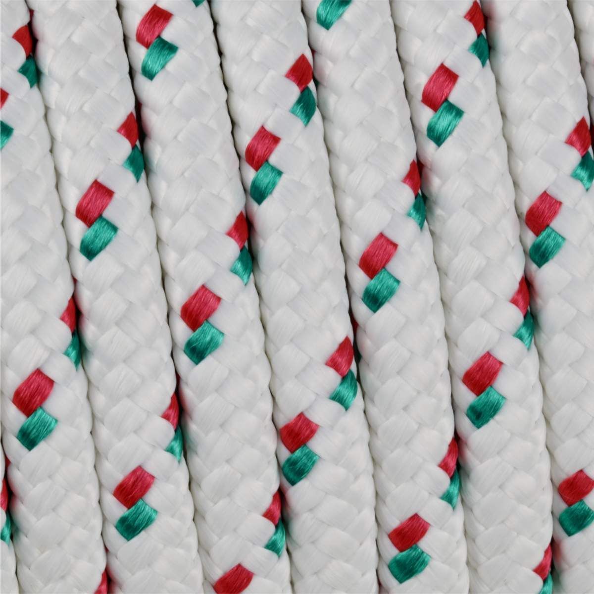Treccia realizzata con filati di poliestere opaco bianco e segnalino bicolore rosso - verde. Idonea per usi generici a basso impiego tecnico, si presta ad essere utilizzata principalmente nel settore ferramenta, ma trova applicazione anche nel settore edile, agricolo, industriale e per attività outdoor. Disponibile in diversi diametri e lunghezze, bobina e blister con metri lineari continui e senza giunture. Si consiglia una saldatura a caldo dopo il taglio. Prodotto di ottima qualità e 100% Made in Italy.